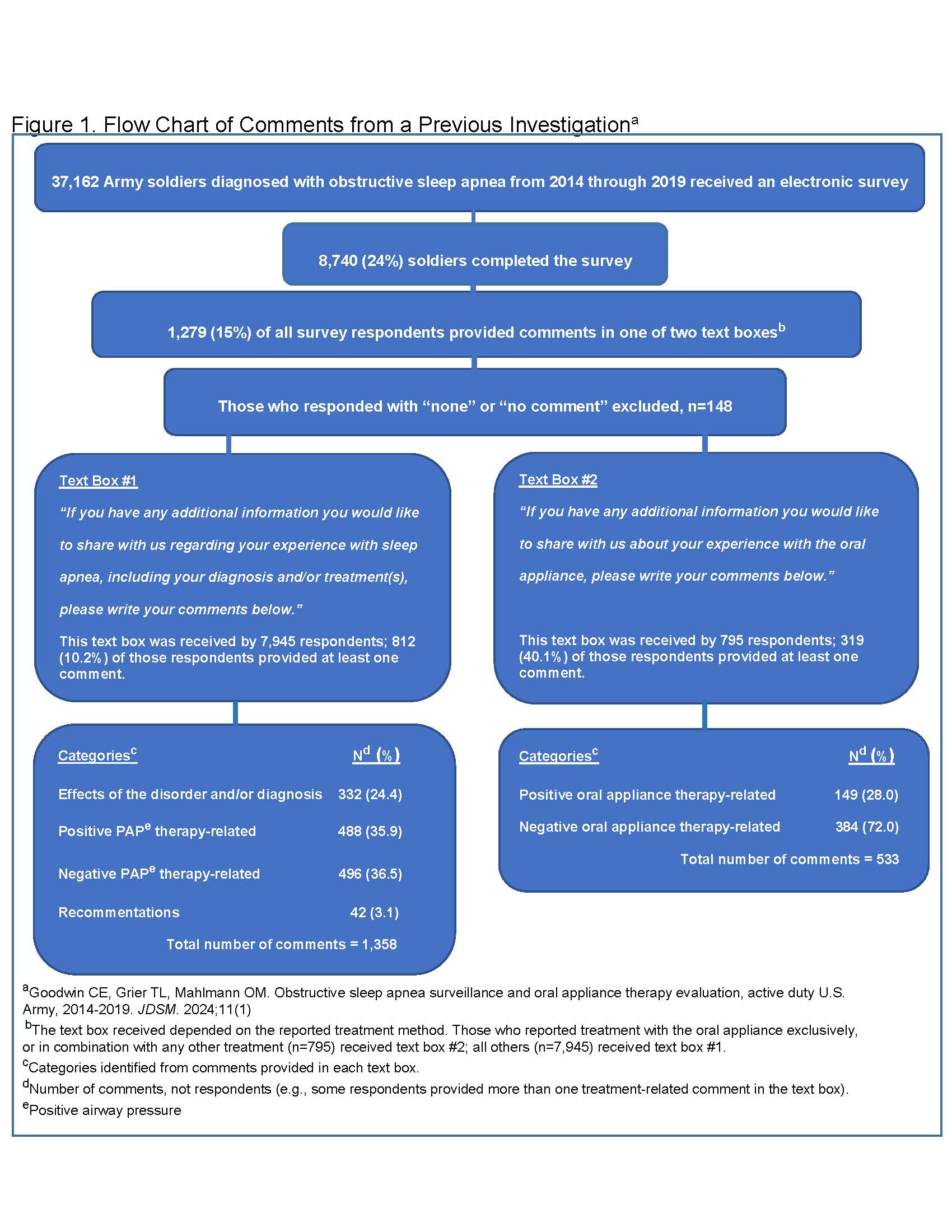 Goodwin C, Grier T, Mahlmann O. U.S. Army Obstructive Sleep Apnea and Oral Appliance Therapy Survey: A Qualitative Analysis of Comments. J Dent Sleep Med. 2025;12(4)