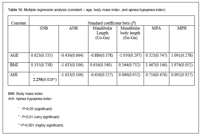 Table 10Multiple regression analysis (constant – age, body mass index, and apnea-hypopnea index). |