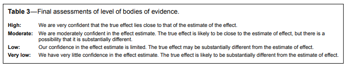 Table 3Final assessments of level of bodies of evidence. |