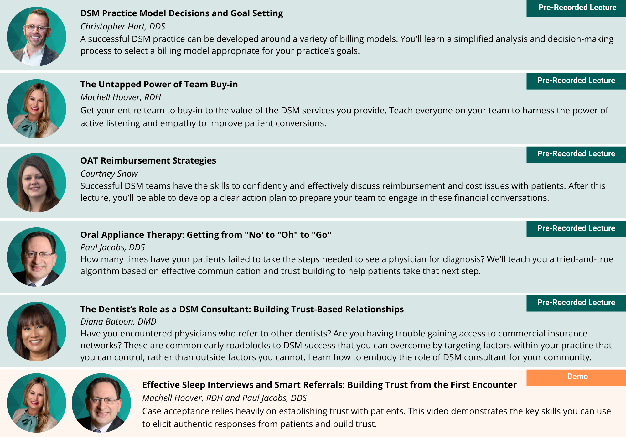 While not required, it is strongly encouraged that dentists complete the AADSM Mastery Program and team members complete the DSM Team Training Program prior to registering for Practice Management On Demand.