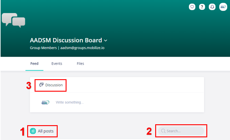 2. Searching: To search for a specific topic, use the search bar to the right. If you have a specific question or topic in mind, we recommend searching for the topic before creating a new discussion.