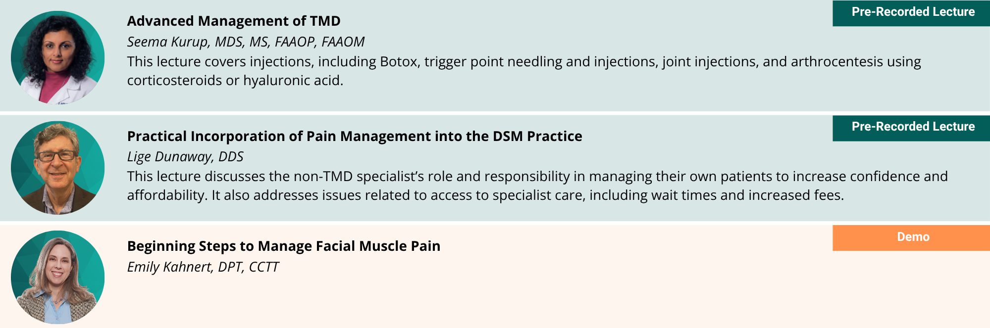 To qualify for the member rate, individual team members must be members of the AADSM. Not a member? Join today and save on your TMD for the DSM Dentist Workshop registration.
